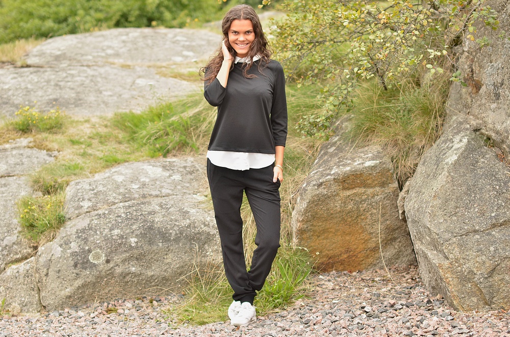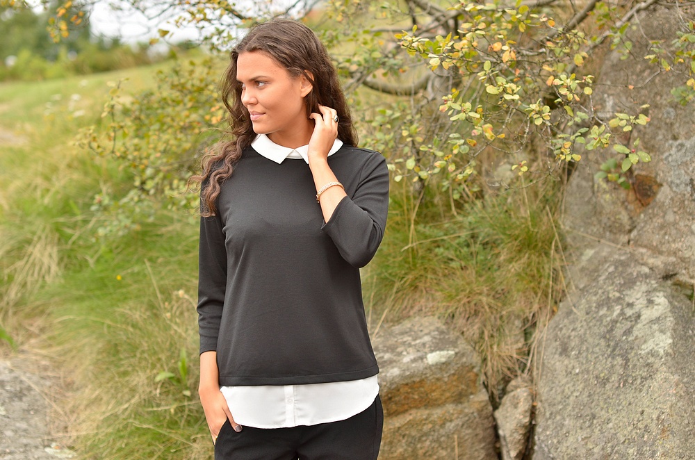 Ja här ser ni superfina Secret-byxan som nu är med mudd nertill och klassisk linning utan resår upptill så man får en snygg kostymbyxa-look. Fina tröjan är i Tinny-serien i superskön kvalitet med isydd skjortdetalj som ger en fin look.