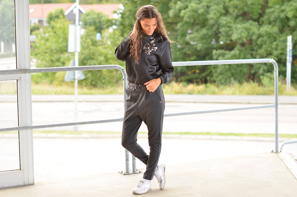 Här ser ni snygga Ajlajk-byxan "It124" på Amanda tillsammans med trendiga bomberjackan "VmElla" som ni får vara snabba på då det inte gick att få tag på så många och den är verkligen sååå snygg.