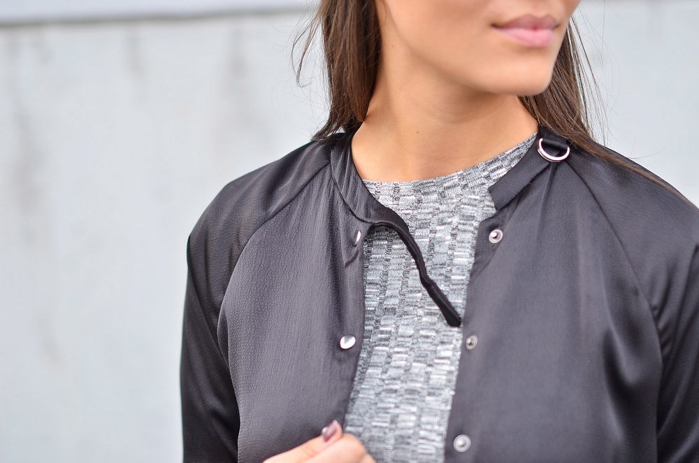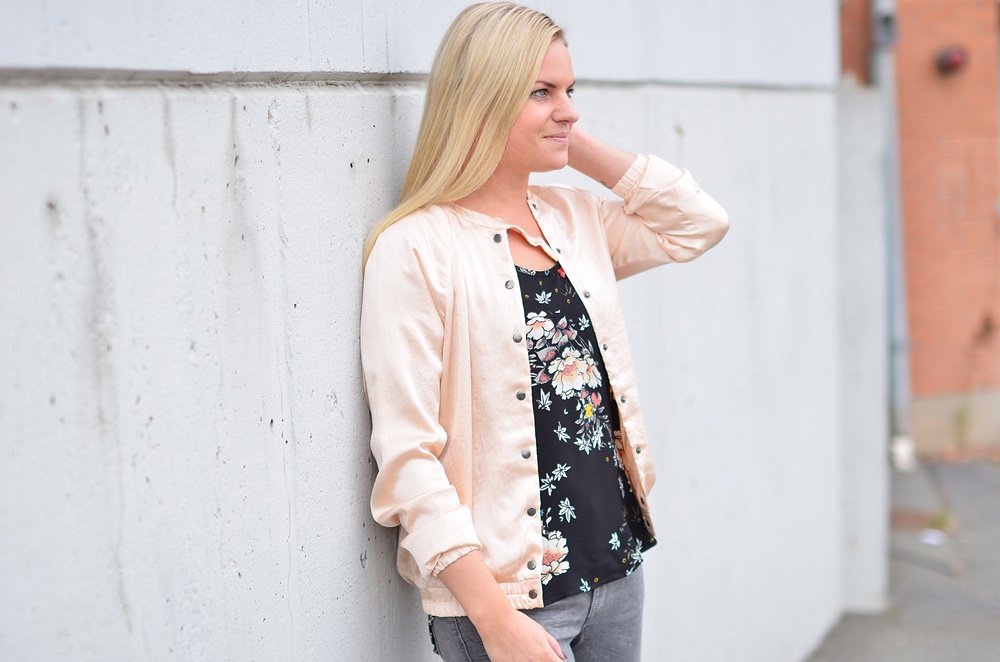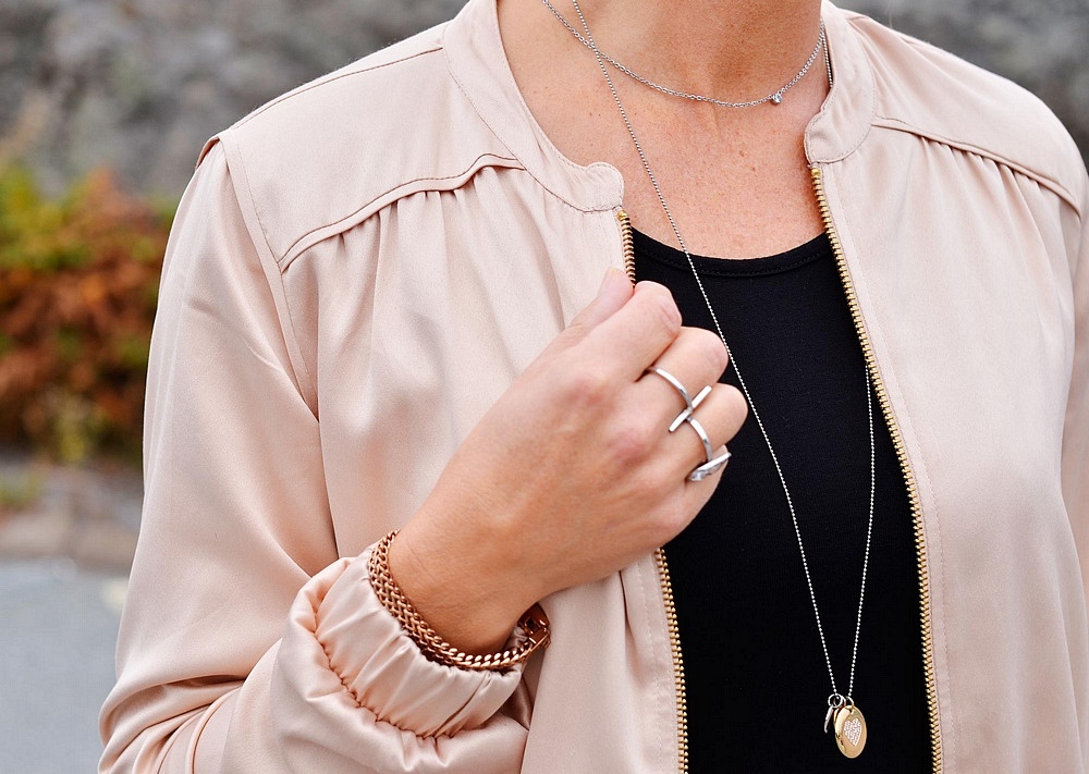 Här ser ni dagens fina bomberjacka i den snygga blanka kvaliteten med litet spänne upptill. *Jessica har på sig fina mönstrade linnet "OnlMallory Istan" under bomberjackan "VmPam". Jeansen är nya snygga ankelmodellen "OnlCarmen" som sitter såååå skönt på. * Amanda har på sig sköna ribbstickade tröjan som kommer i dag tillsammans med "OnlPoptrash Pinstripe".