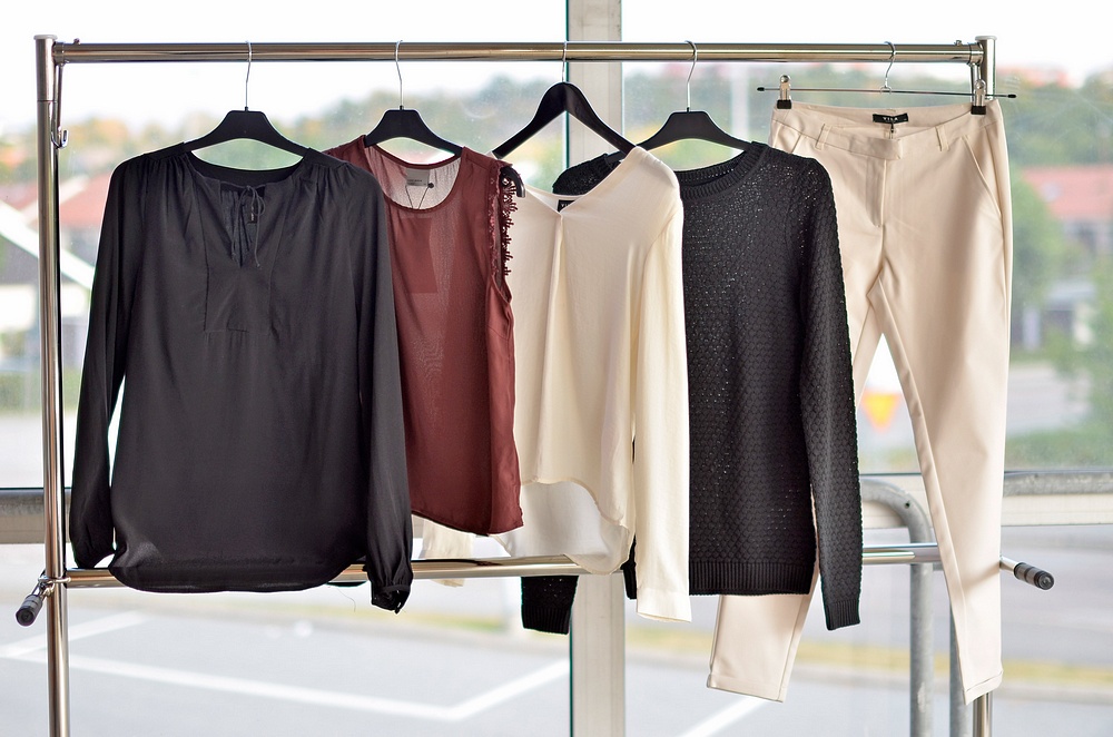 Här ser ni några av plaggen och smyckena som Amanda köpt till sig själv här från webshoppen. Hon har på sig nya fina Vila-blusen "ViMelli" och "ViCila" i svart. På ställningen ser ni även Soya-blusen "Odilia 1", linnet "VmLennie", Vila-tröjan "ViShare" och ankelbyxan "ViCila". Smyckena är fina "Sanna", "Lee" och "Kavala Ring Double".