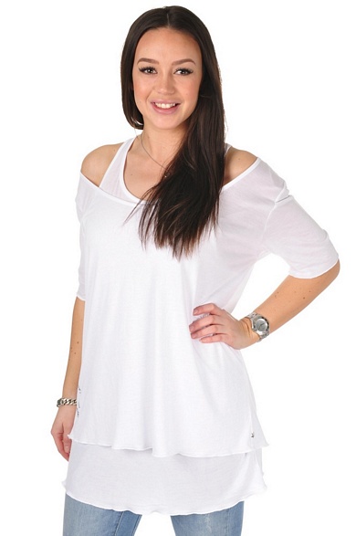 Här visar tjejerna några av fina plaggen som kommer upp i dag. * Jessica har på sig fina spetstoppen "med långa skira Cemre-skjortan över. * Amanda har på sig Soya-koftan som är i fantastiskt skön kvalitet i fin välarbetad design.