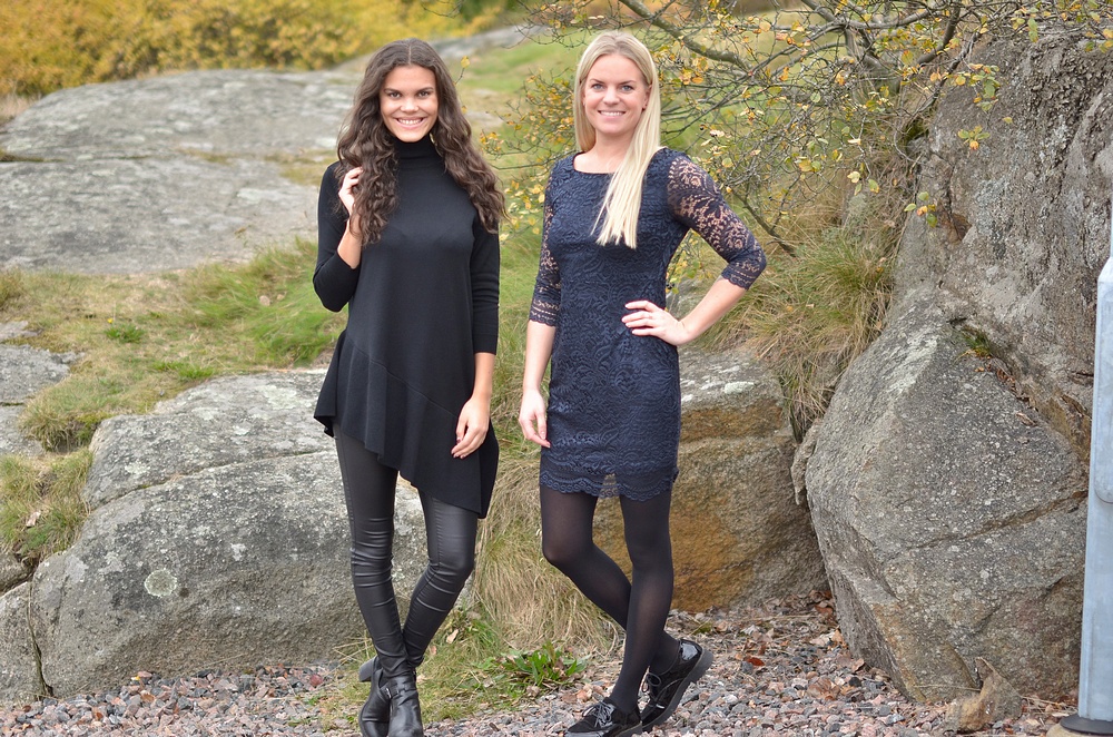 Här visar tjejerna några av alla fina plagen som kommer upp här i dag kl 11:00 * Amanda har på sig superfina tunikan med fin volangkant nertill som är i mjuk finstickad kvalitet. Byxan är suveräna Vicommit Coated. * Jessica har på sig superfina klänningen "OnlNew Sierra".