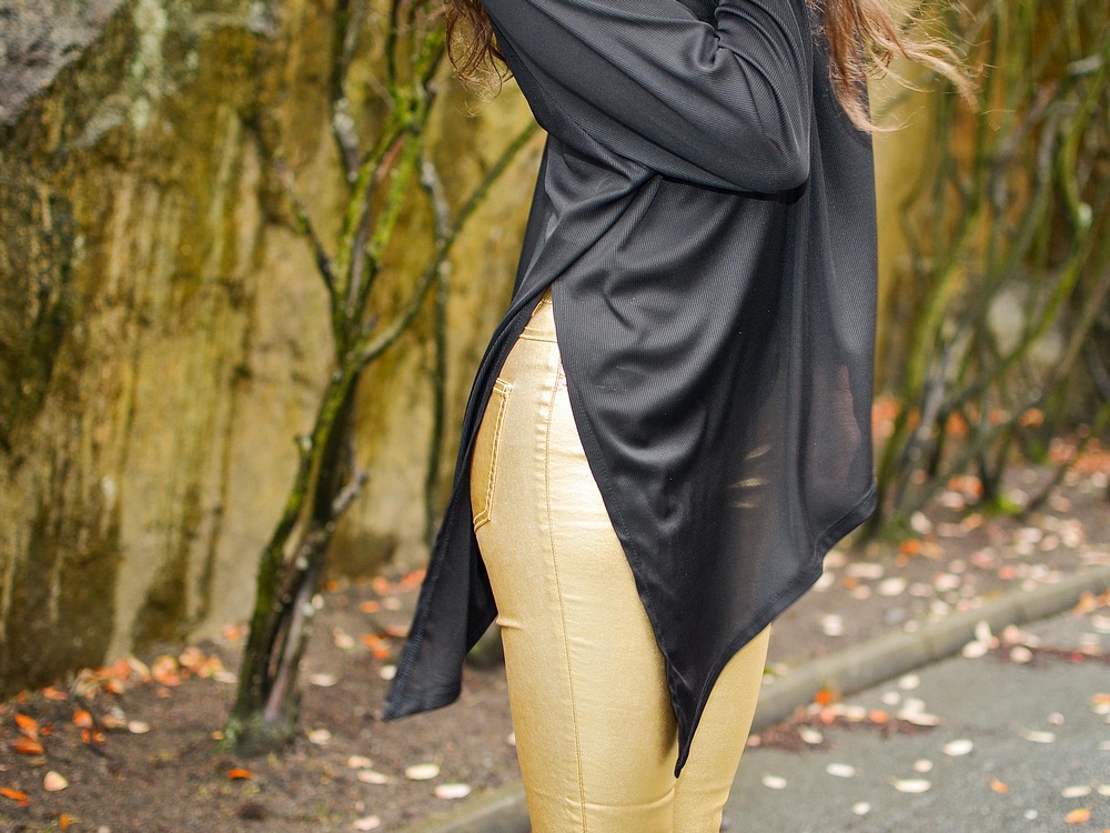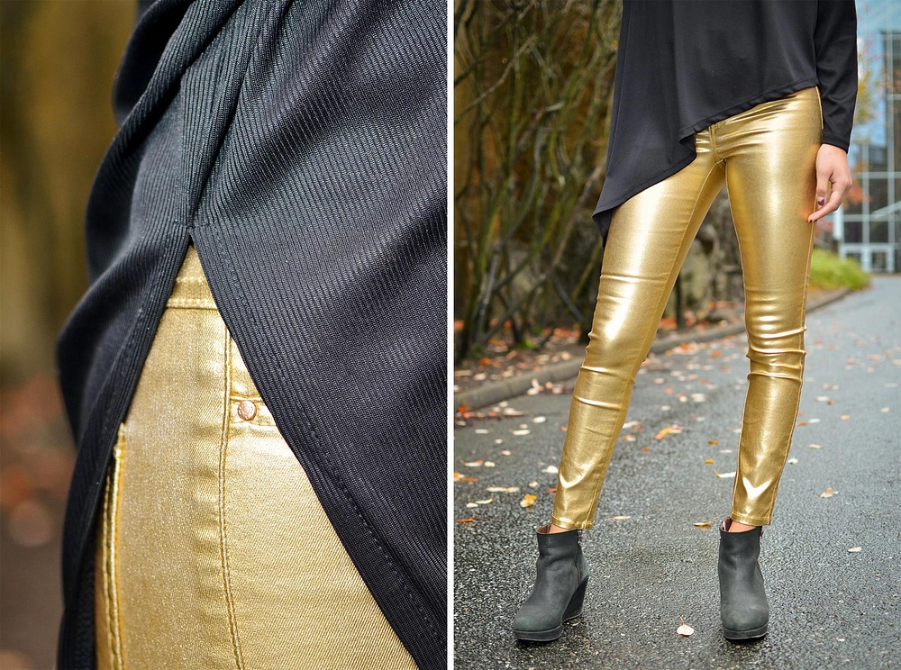 Jag har på mig sköna "OnlPopTrash Glitter"-byxan i den nya skimrande kvaliteten och Vila-toppen "ViRache".