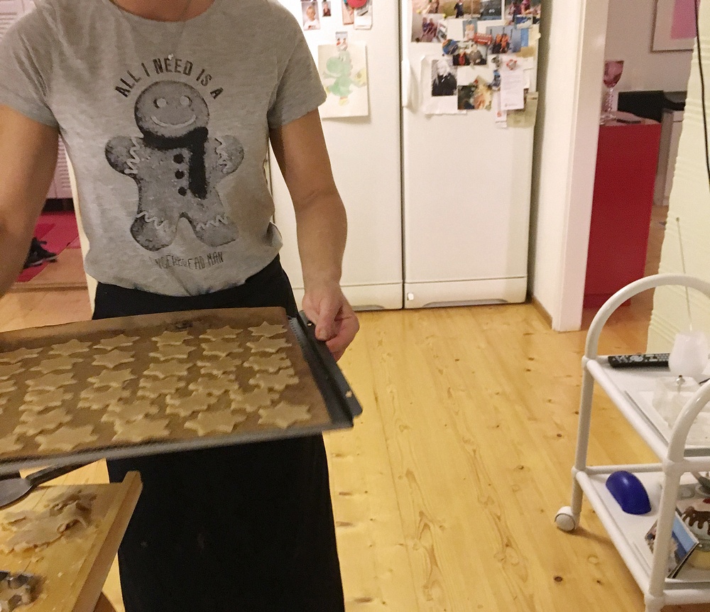 Idag är jag och barnen hos min mamma och bakar årets pepparkakor, en tradition vi haft sedan jag hade butiken i stan och då alltid jobbade helg och hade svårt att hinna med allt i tid hemma till 1:advent. Kunde inte låta bli fina jultishan här som jag tyckte passade perfekt idag, några få finns ännu kvar på webshoppen:)