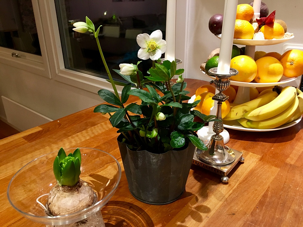 Såg på morgonprogrammet på TV4 i morse och då hade de dukat upp så härligt md hyacinter så jag fick lite julfeeling och köpte både hyacinter och julros nu. Mer än så kommer inte upp förrän 1:a advent så resten får jag längta efter några veckor till... Det är isf inte så långt kvar för första advent är ju 27: enovember:)