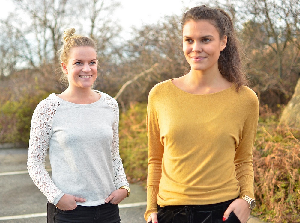 Jessica har på sig fina "Vmbelina" och Amanda har på sig finfina tröjan "Onlphio".