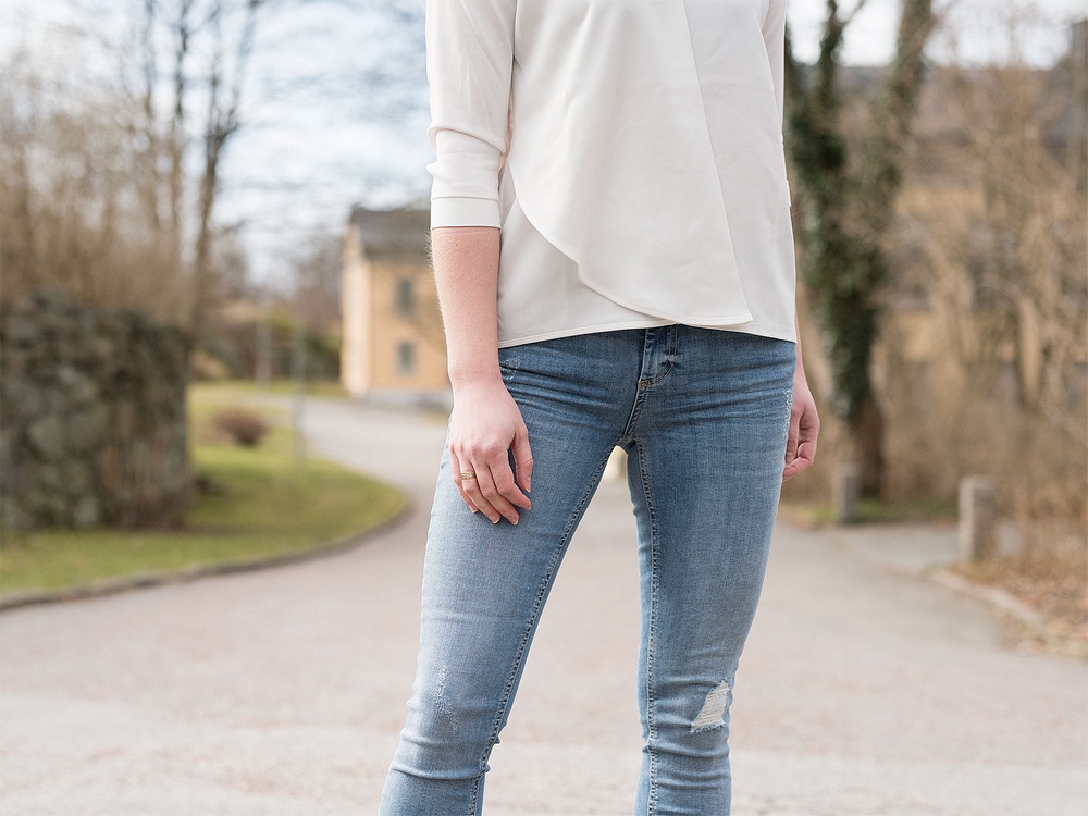 Till jackan har hon matchat dagens väska från Pieces. Den blir ju så snygg till ett par blå jeans! Väskan kommer även i svart.