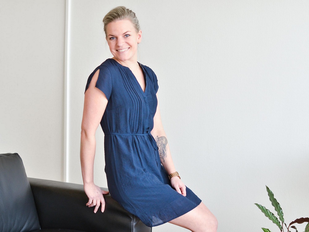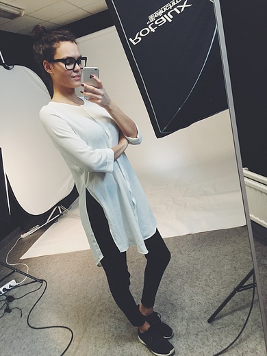 Jessica har på sig den härligt våriga skjortan som sitter fint på. Perfekt att ha nu till våren med ett par jeans och kanske en stickad tröja över!