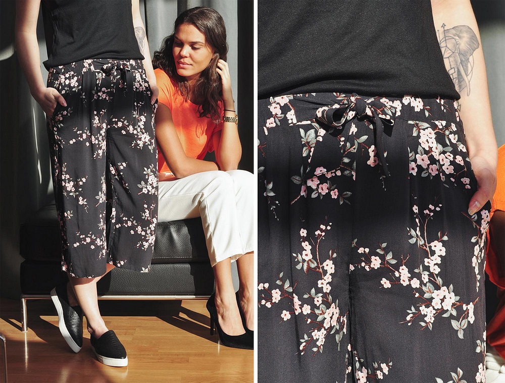 Jessicas har på sig culottebyxan från populära Tristiane-serien. De sitter verkligen superskönt på, jag har bott i mina sådana byxor hela påskhelgen ;)