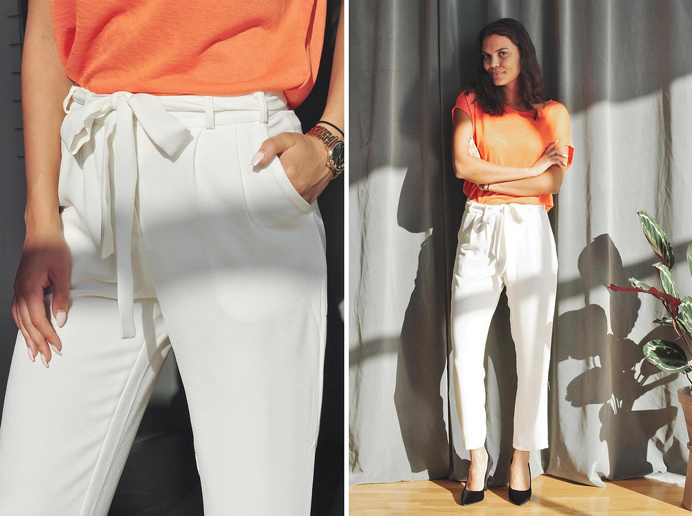 Jag har på mig en riktigt fräsch outfit som är lika snygg till jobbet som till aw:n nu till vår och sommar. Byxorna är nya färgen på "Objdelta", supersnygg och skön byxa som vi verkligen rekommenderar.