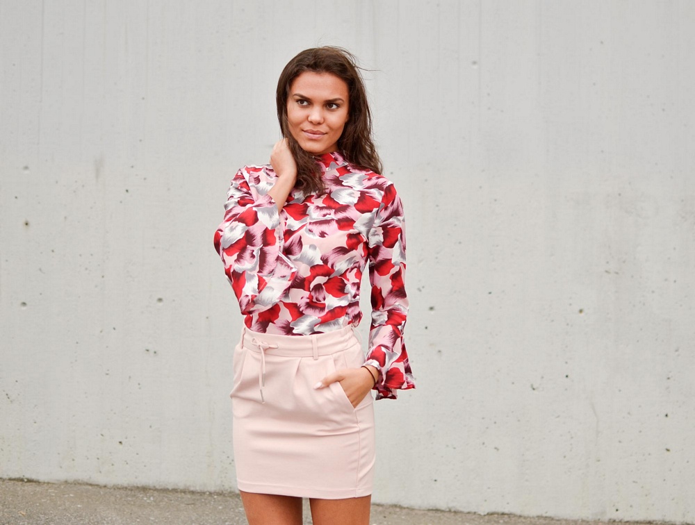 Jag har på mig en ny färg på omtyckta "Onlpoptrash-kjolen". Den blir så fin ihop med toppen som kommer idag! Mönstret och volangärmen är riktig snyggt. En topp som är perfekt att ha i garderoben då den passar till både fest och vardags.