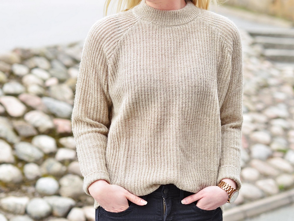 Stickade tröjan- Jääätteskön stickad tröja med halvpolo. Den sticks ingenting utan sitter så mjukt och snyggt på. Den kommer bli så fin till både jeans och kjol.