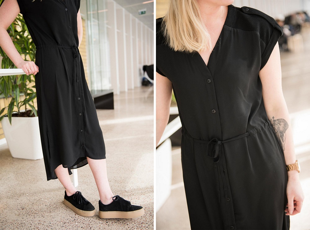 Är ni lika förtjusta som vi är i Jessicas långklänning? Så fin med knapparna hela vägen och knytningen som ger en feminin look. Den är perfekt att ha till vardags eller piffa upp den med något smycke för att få en festligare look!