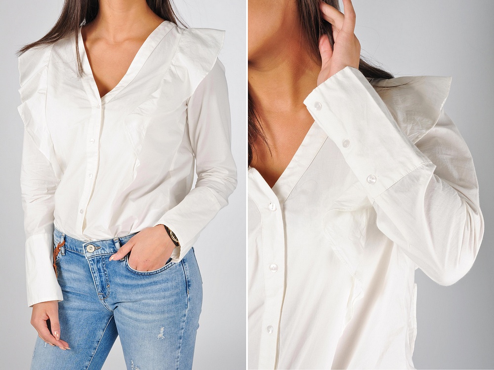Amanda har på sig blusen från Vila. Det blir så fint med volangerna. Den blir snygg till jeans, kjol eller något mer dressat om man vill ha det!