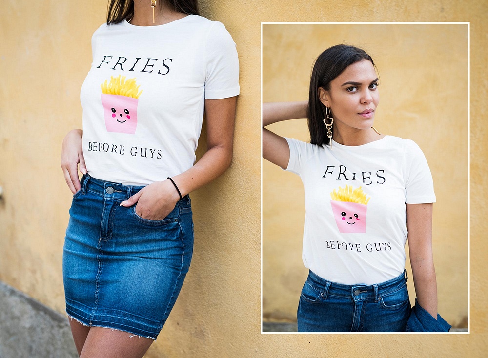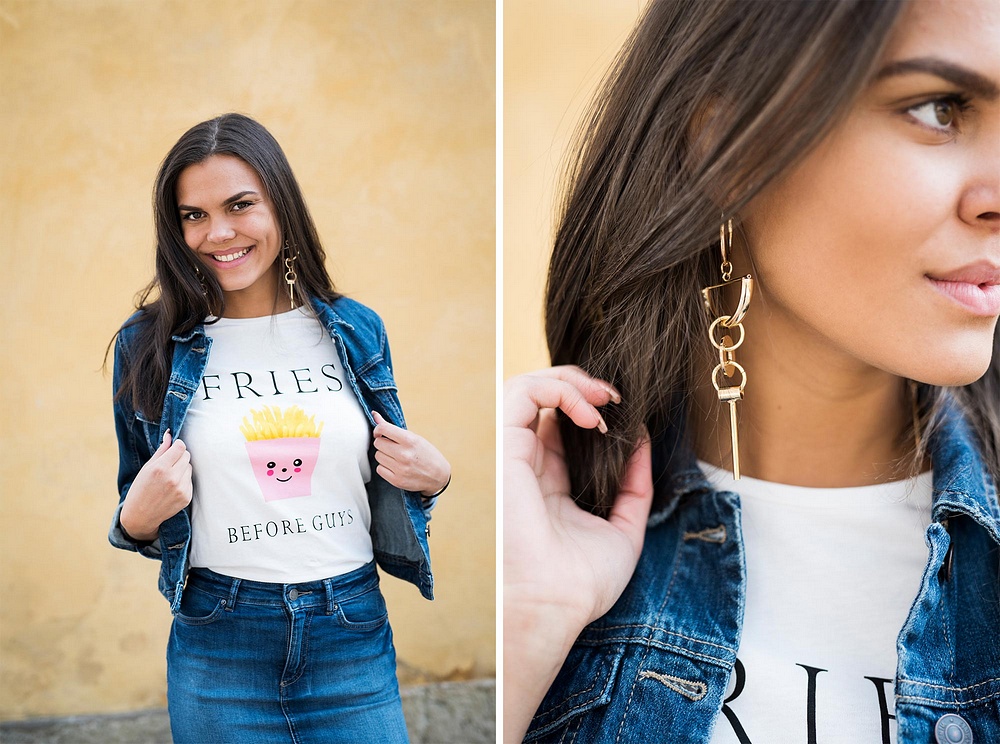 Amanda har på sig den härliga tishan från Vila i härliga prints! Den kommer i tre tryck till mer än det ni ser här. Till tishan har hon på sig jeanskjolen från Pieces och den sköna jeansjackan från Vero Moda.