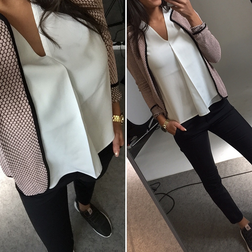 Vi får ett par svarta byxor i dressad modell som ni kommer tycka om! Till byxorna kan man matcha dagens topp i lite blankare guldkvalité. Perfekt outfit till AW:n.