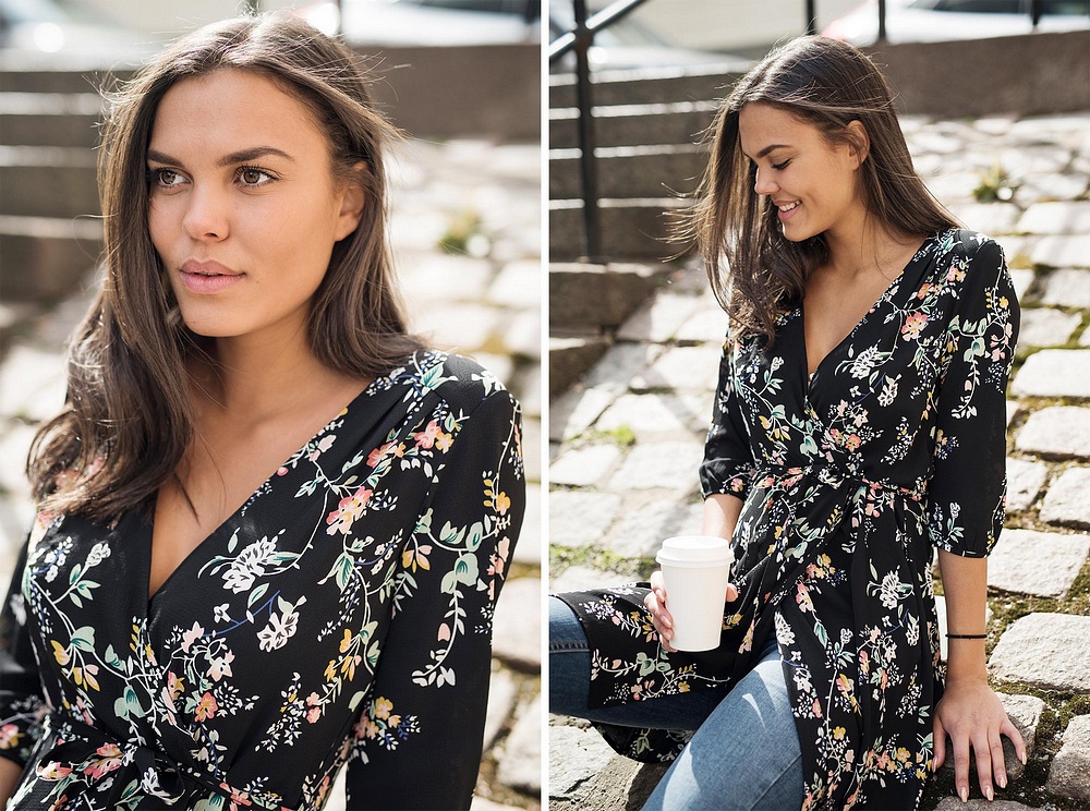 Här har Amanda på sig den nya färgen på "Onlnova Lux Dress". Det populära svart/blommiga mönstret får ni inte missa!