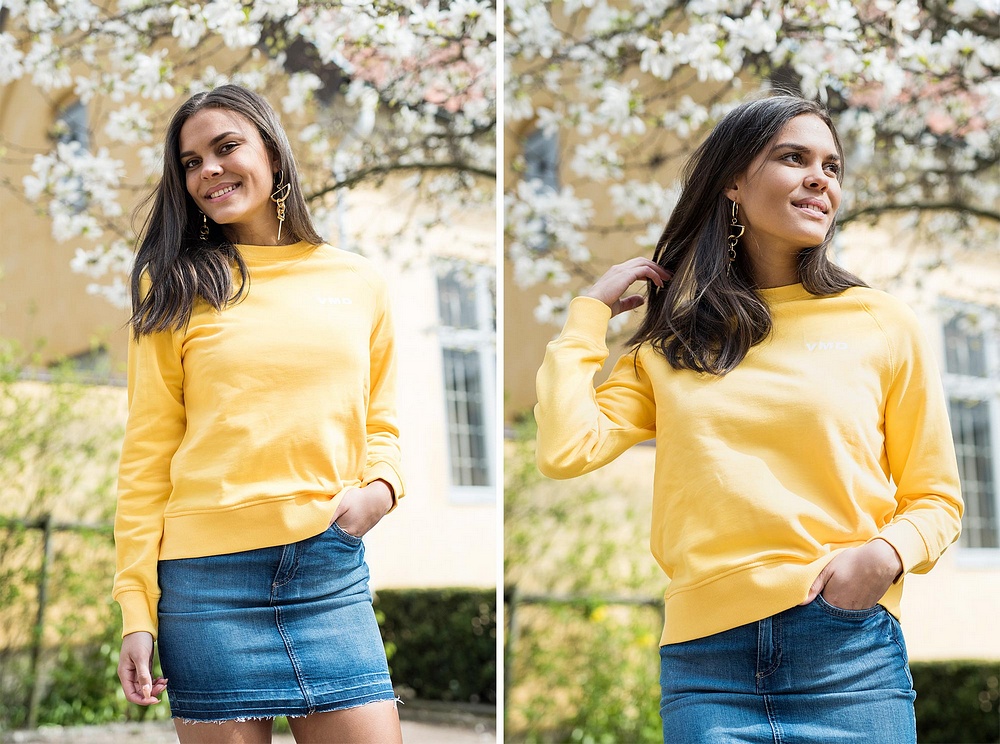 Amanda har på sig den nya collegetröjan från Vero Moda! Den kommer i fyra suuuperhärliga färger! Den sitter riktigt skönt på. Perfekt att dra på sig på sommarkvällen eller matcha med ett par jeans och få en trendig look.