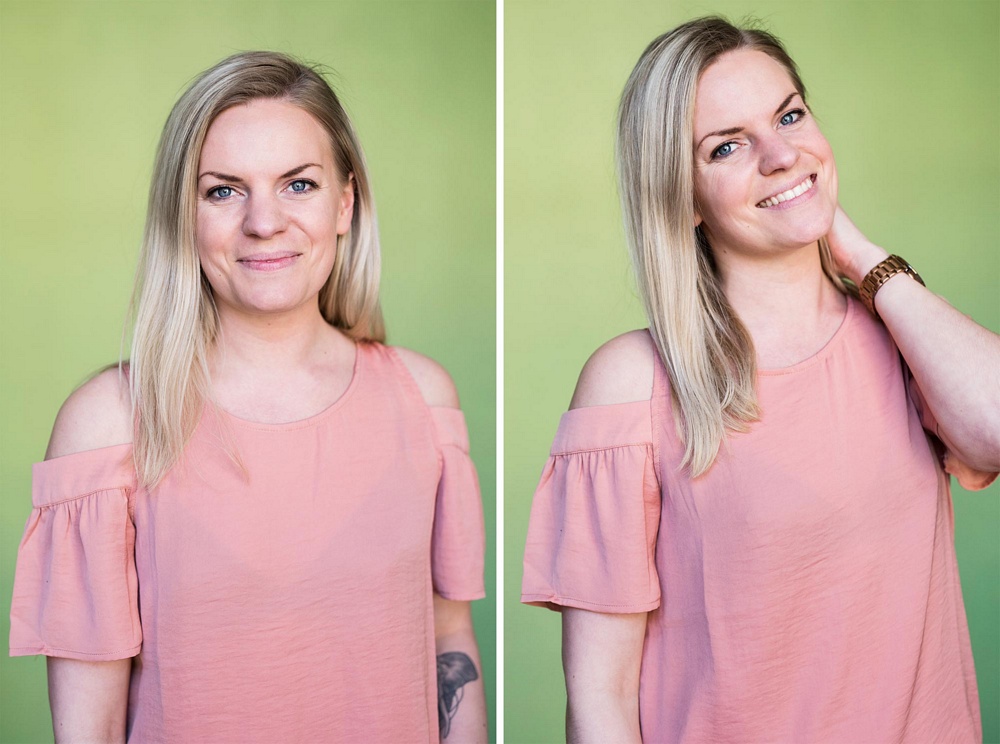 Jessica har på sig den fina off-shoulder toppen i lite blankare material. Den kommer som synes och i marin!