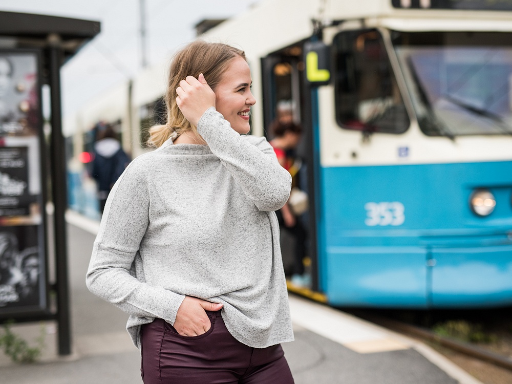 Idag får vi upp en ny färg av våran populära Poptrash classic pinstripe som nu kommer i en mörkgrå snygg färg. Supersnygg att matcha till dagens fina blus som ni ser på Jessica här ovan. Då får du en skön och dressad look.