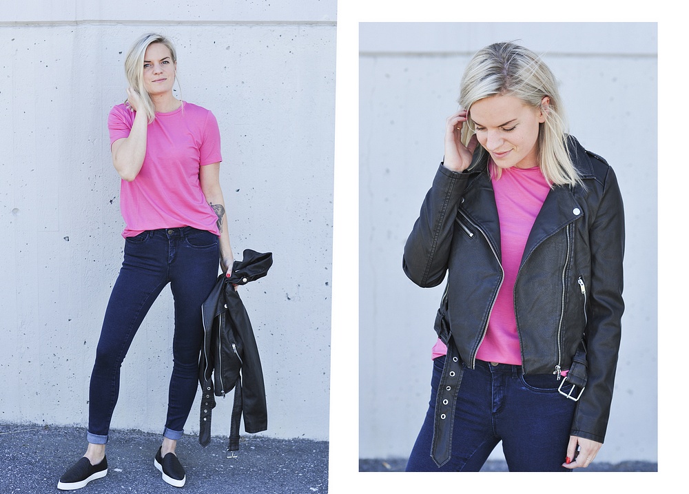 Idag kommer det upp en superfin skinnjacka som ni ser på Jessica här ovan. Till det har hon de supersköna jeansen som kom igår och den rosa toppen som kommer idag och som är såå mjuk och skön i tyget. Kommer i mörkblått, svart och vitt också!