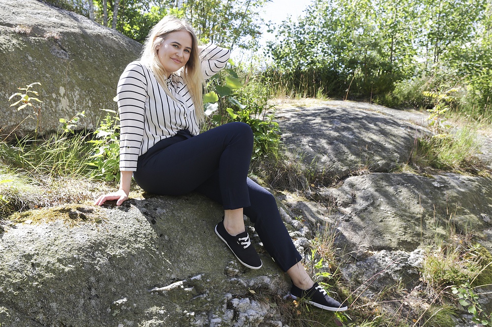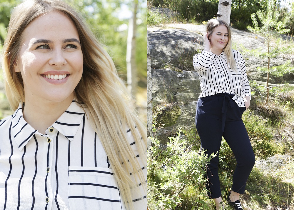 Här ovan ser ni Jessica i nya superfräscha poptrash-färgen "Ljus Sand" matchat med dagens Onlmyrina-blus som är så underbar i färgkombinationerna.