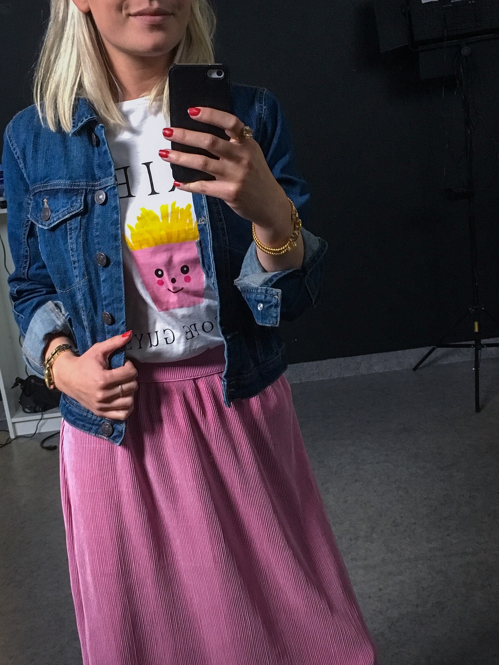 Kjolen är VMJACKIE KNEE SKIRT och kostar 249 kr. Till den har jag matchat VILOVINA NEW T-SHIRT som kostar 99 kr nu! På första bilden har jag den supersnygga mockajackan NMLUNE FAKE SUEDE och som kostar 149 nu, och på den andra bilden har jag valt att matcha med en klassisk jeansjacka som ligger på 139 kr.. kan det bli billigare? ;-)
