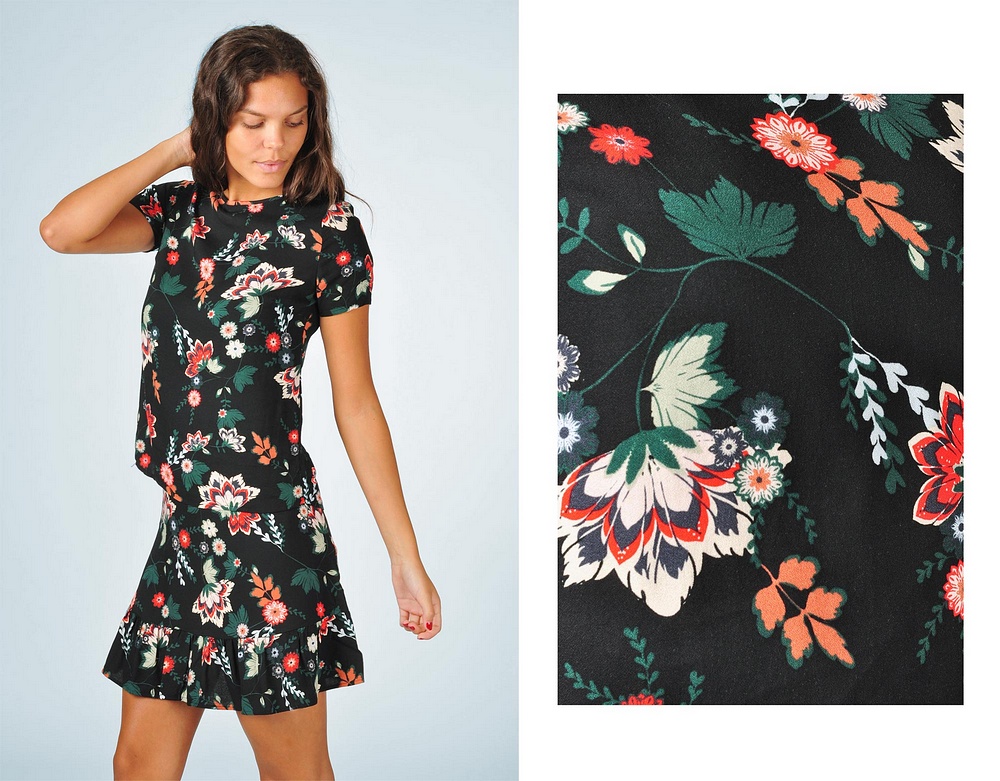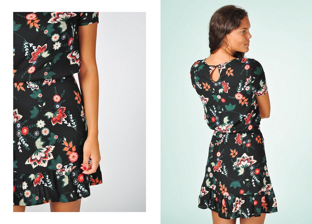 Här visar Amanda upp det söta setet från Vila. Lika snygg att ha nu med barbent som det är att ha med ett par strumpbyxor och cardigan till höst/vinter! Det är väldigt fina färger i det blommiga mönstret.
