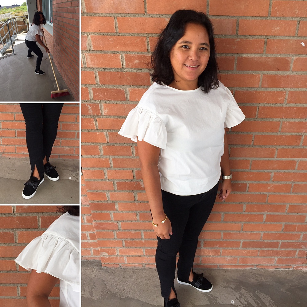 Nu har halva veckan gått och solen lyser här hos oss! Idag vill jag dela med mig av min outfit jag har på mig på kontoret.! Jag kunde bara inte motstå den härliga blusen Allunga och de snygga byxorna Vmcloud med den coola detaljen med sprund längst ner. Det finns några storlekar kvar så passa på om ni också gillar dessa. Armbandet är Mini drop bracelet.
