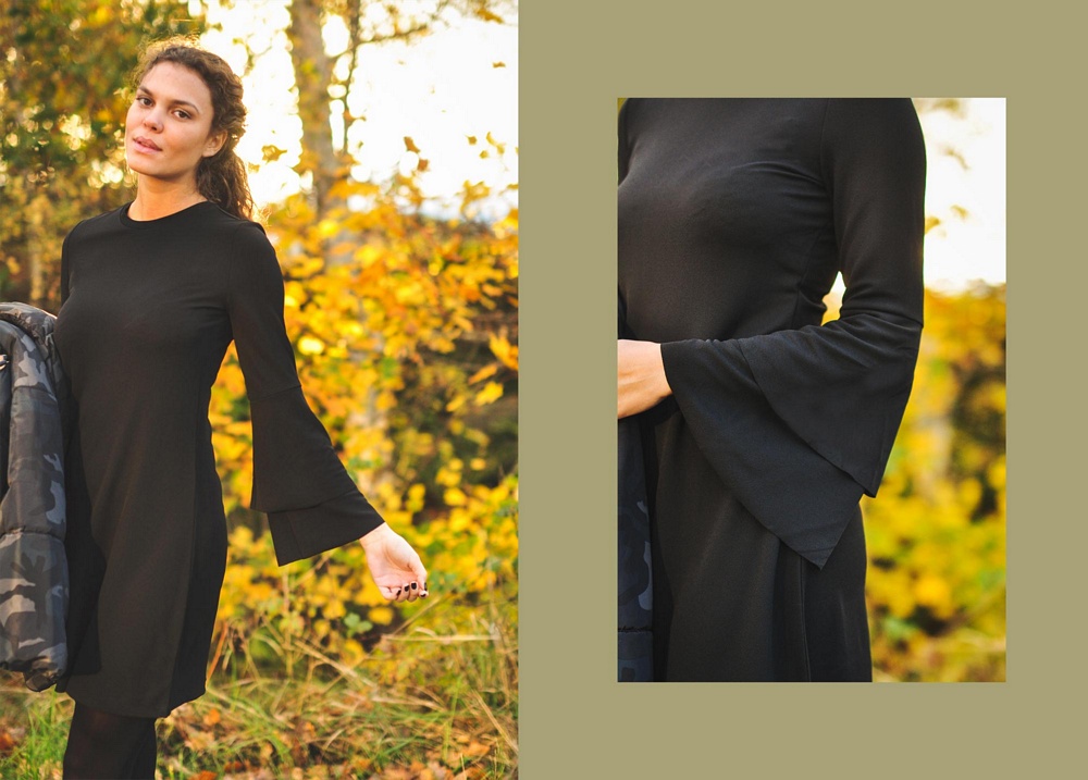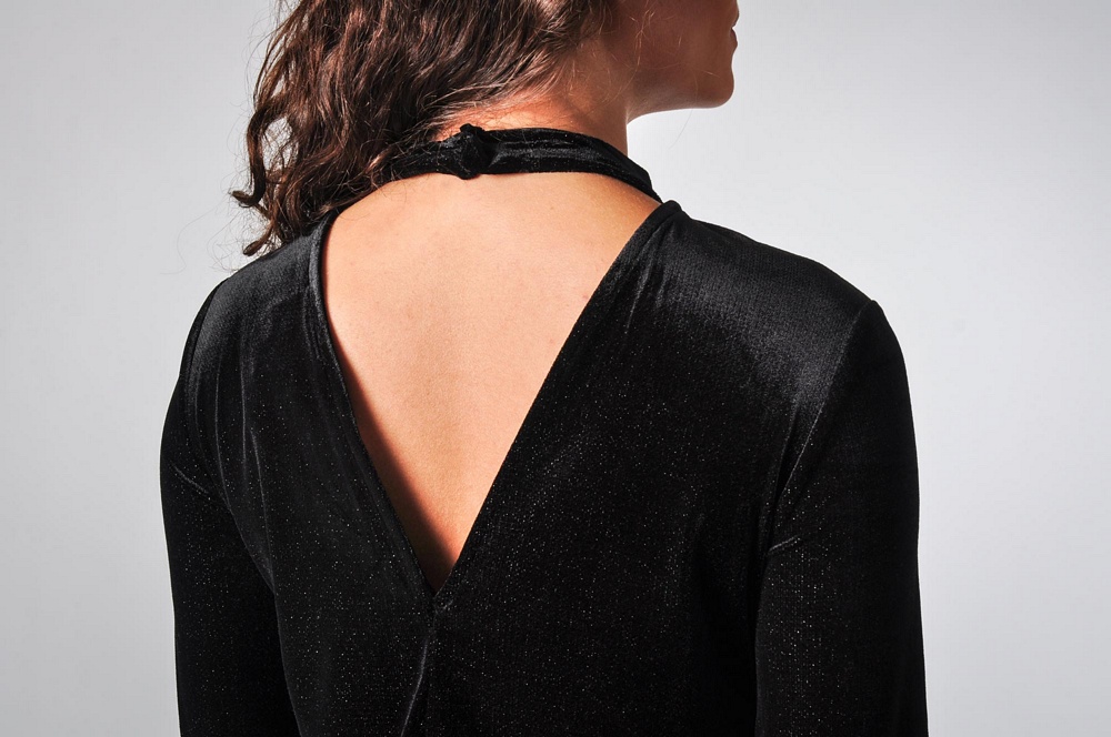 Amandas klänning är riktigt fin. Det är sammet med liite glitter i som gör den alldeles perfekt för både fest och vardags. Den fina öppningen ger klänningen det lilla extra.