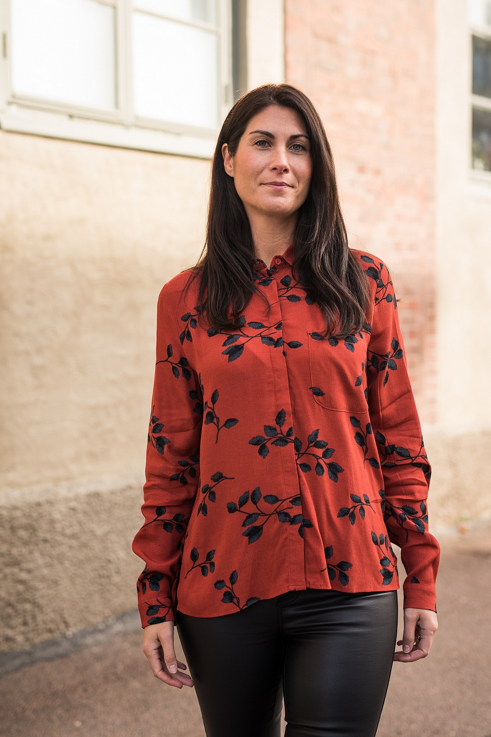 Blusen får en fantastiskt fin halvpolo när man knäpper den hela vägen upp! Den får ett riktigt fint fall och sitter perfekt på.