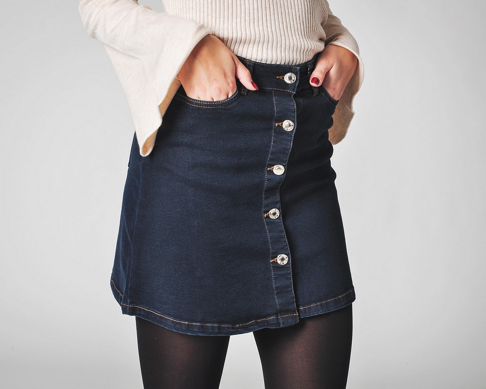 Vi får en mörkare jeanskjol från Vero Moda med knappar framtill. Den sitter riktigt snyggt på! Den blir väldigt fin ihop med dagens blus :)