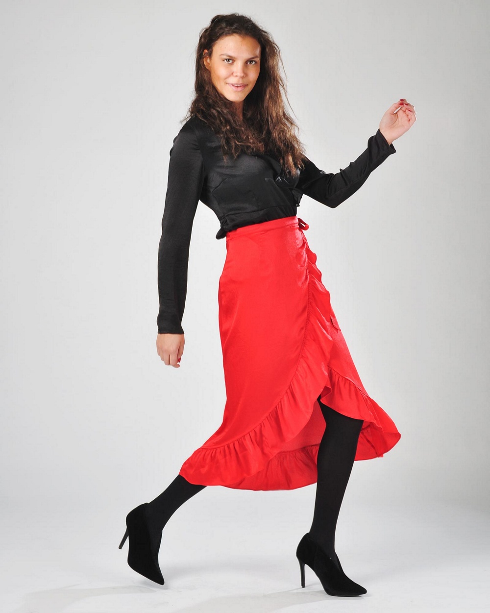 klänningen i lite glansigare material från Vila. Den finns även som