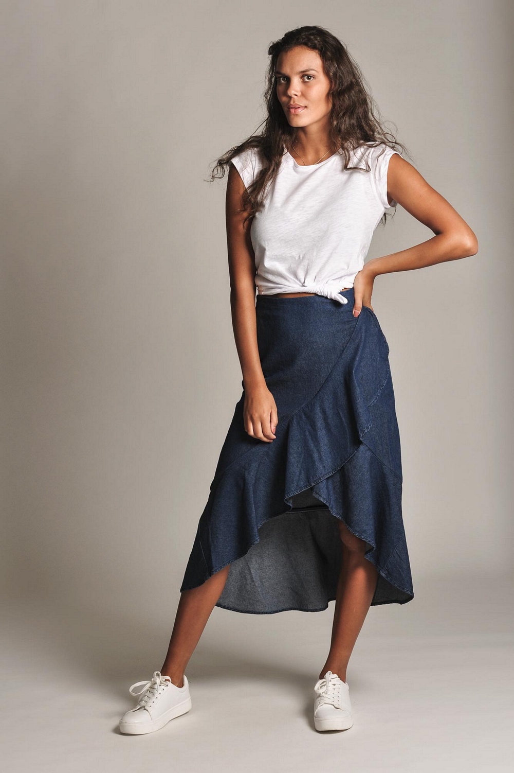 Ja den här trendiga kjolen har vi visat er tidigare och fler av er har mejlat och frågat om när den kommer.. Nu äntligen kan ni snart shoppa den! Den passar superfint med dagens bastopp som Amanda har på sig här! Man kan även klä upp den med en söt blus eller skjorta.