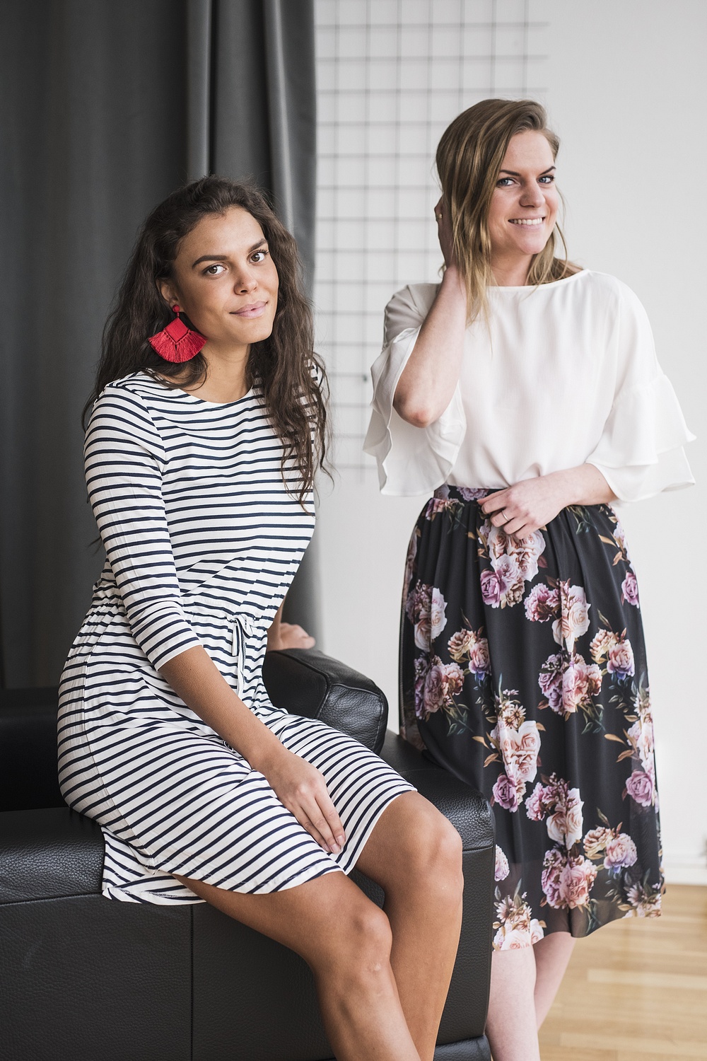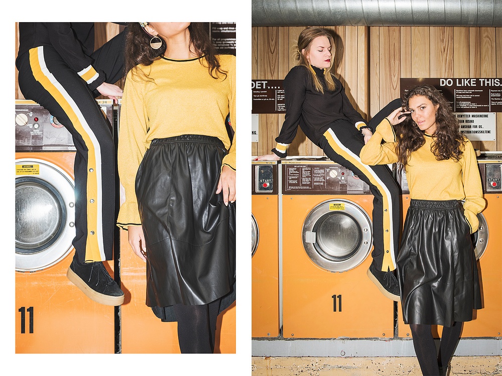Här är är två favoritoutfits från Jessica och Amanda! De tog med sig sina favoritoutfits från Mandel och tog över en tvättomat som matchade klädernas färger ;)