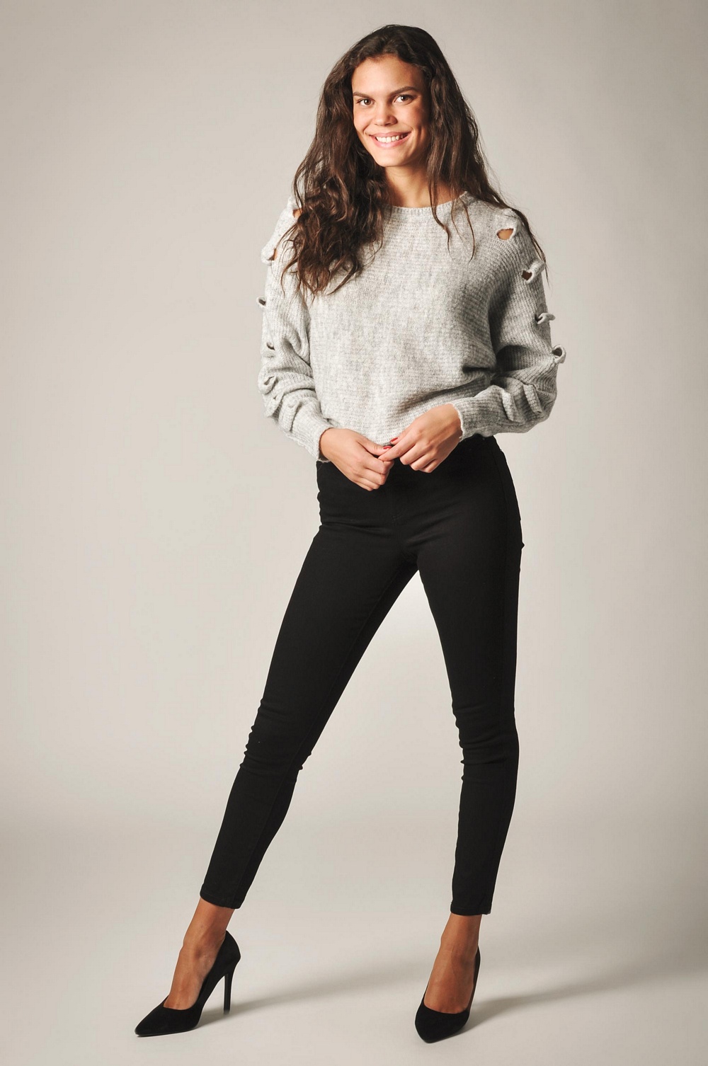 Amandas outfit nedanför kommer också idag! Kjolen är fantastiskt söt i både modell och färg. Man kan klä upp den till festen eller ha den till vardags! Här har vi en fin vardagsoutfit till våren med dagens tröja från Only. Det är söta detaljer som ger den det lilla extra. Den kommer även i svart och kostar 249 riksdaler!