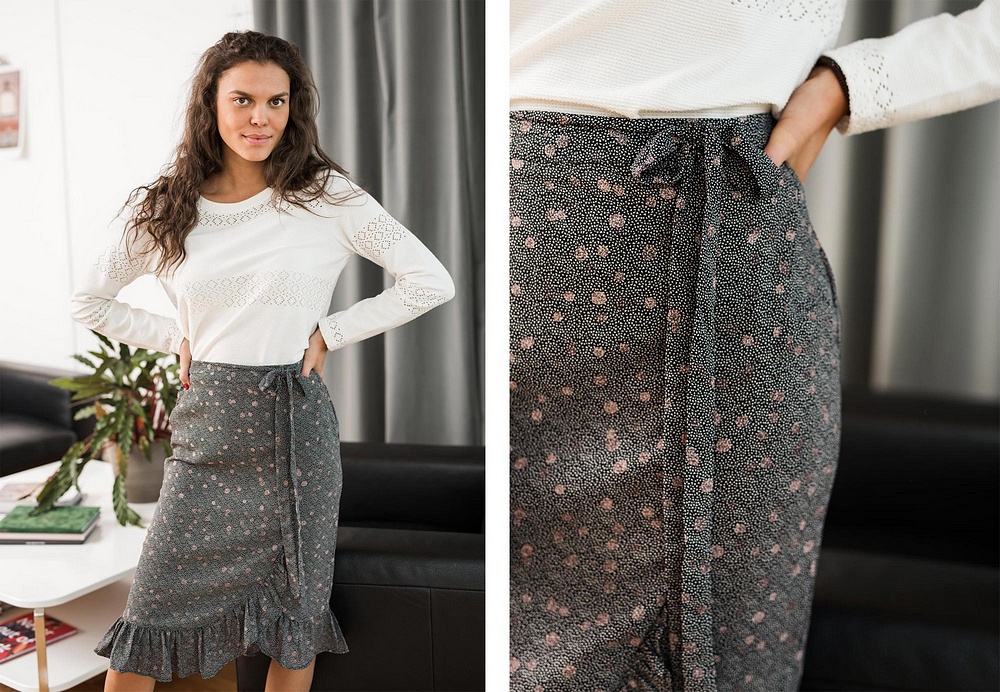 Amandas outfit är med hennes favoritkjol från Vila i längre modell. Den är verkligen läcker att ha både i vinter och sommar!