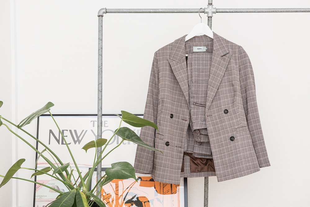 Något som är riktigt trendigt redan nu är det rutiga mönstret som Amanda har på sina byxor här. Det är även något som kommer hålla sig kvar länge märkte vi på mässan! Det fanns nog ingen kollektion där vi inte såg något av det här rutiga så det rekommenderar vi verkligen.