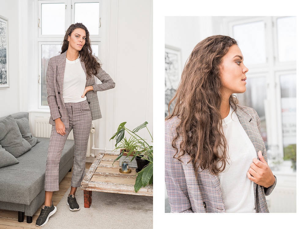 Jag tog med mig både kavajen och byxan till Köpenhamn! Kavajen matchade jag ihop med den vita toppen som ni ser här och ett par blå jeans!