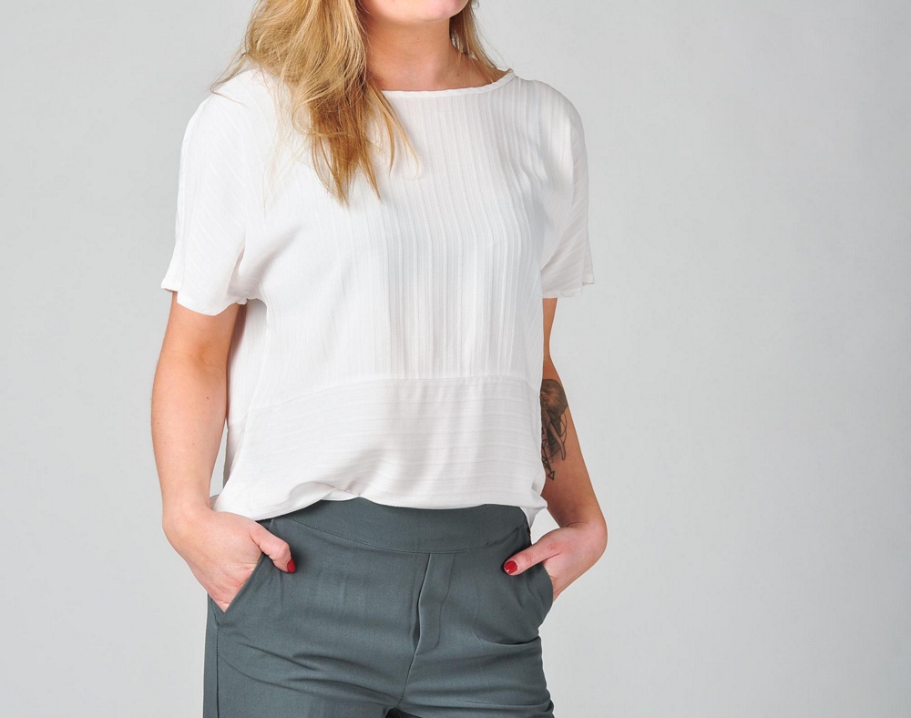 Den vita blusen är väldigt skön i modellen. Med den raka och lösa passformen ihop med det lite mjukare materialet kommer den bli en favoritblus i garderoben!