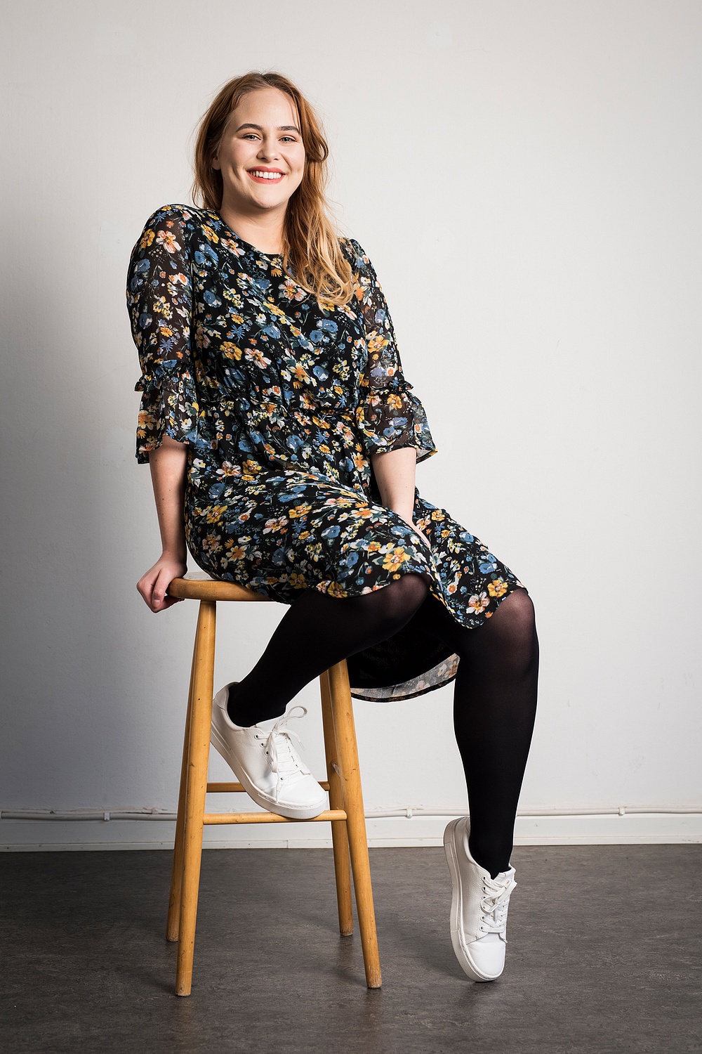 Amanda har på sig den fantastiskt sköna klänningen från Jacqueline de Yong. Den har det fantastiska priset 139kr!!! Här får ni vara snabba, den kommer även i grått och vitt.