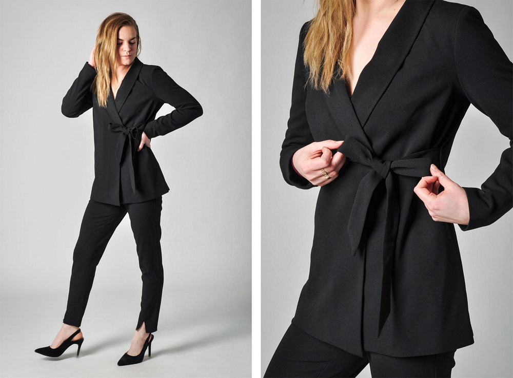 Här ser ni Jessicas fina kostymset från Only! Huur fin är inte kavajen med knytet? Riktigt feminin och bra i passformen. Att den är lite längre ger ett trendigt intryck. Kostymbyxan tillhör och sitter perfekt på! Det lilla sprundet framtill ger dem det lilla extra.