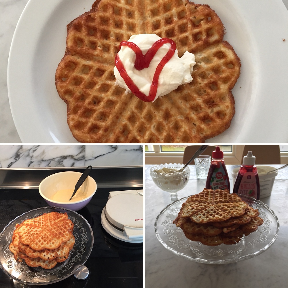 Idag har vart en härlig dag, så jag gav mig ut på förmiddagen på en PW. Barnen ringde och påminde mig om att det var våffeldagen. Så det var bara att bege sig hem och fixa våfflor. Fick göra egen smet den här gången då det ekade tomt i hyllorna där den färdiga mixen brukar stå...