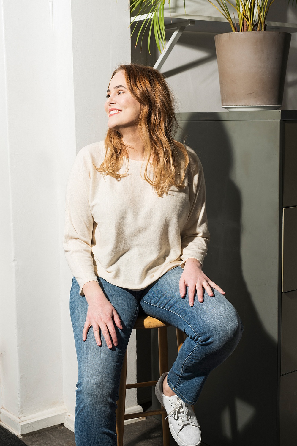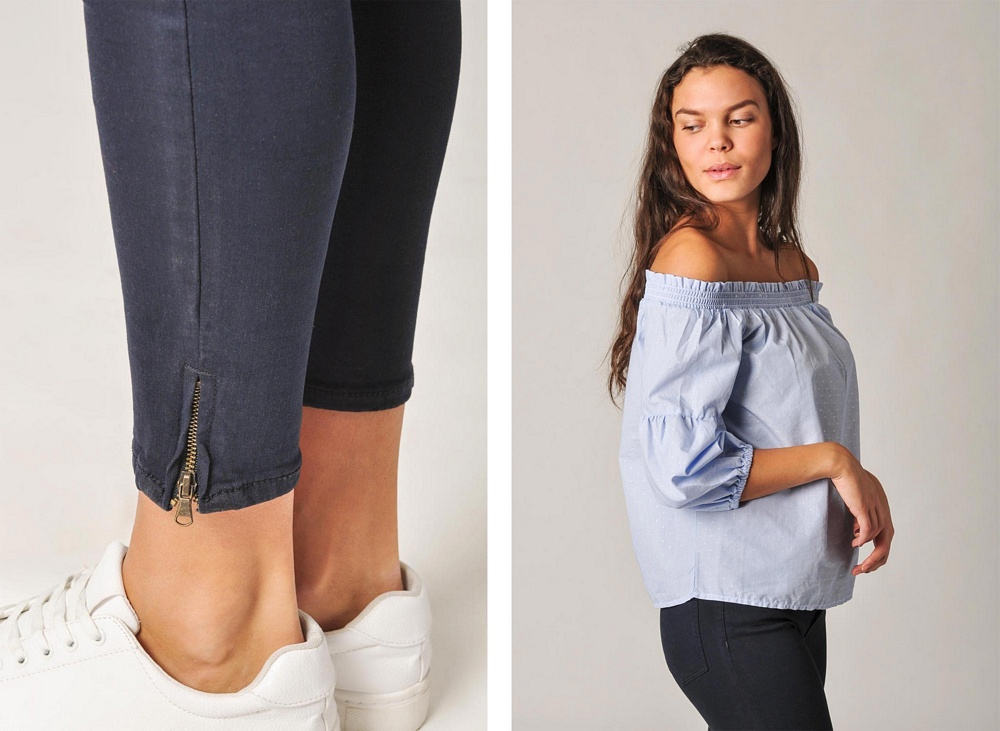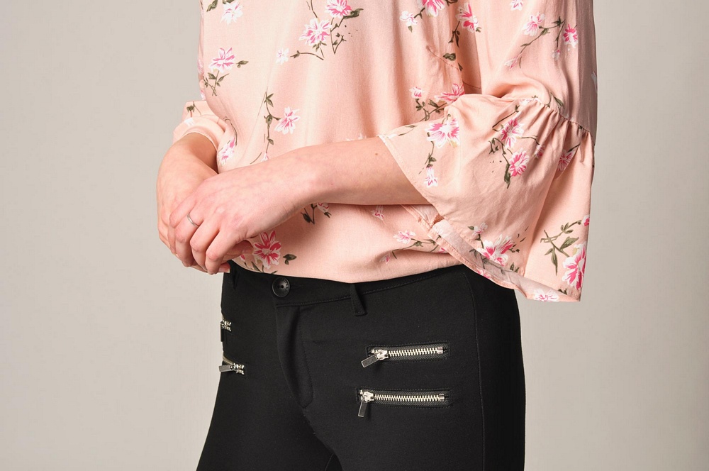 Vi ser Jessica i Soyas fantastiska blus med lite kortare volangärm. Den kommer även i svart och mörkblått. Till det har hon på sig byxleggingsen från Only. Dessa sitter huur skönt på som helst! Mycket stretch och formar verkligen snyggt.