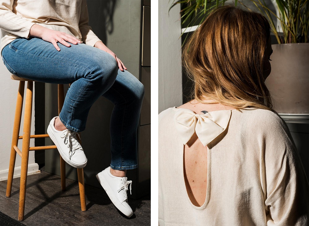 Vi ser Amanda i Pieces superläckra set med knytdetaljer! Kan det bli sötare? Toppen kan man själv välja om man vill knyta fram eller baktill. Byxan är högre i midjan med knyte upptill som man kan ta bort om man vill. Supersnyggt att ha ihop eller till annat. Blusen som Charlotte har på sig idag passar jättefint till byxan till exempel.