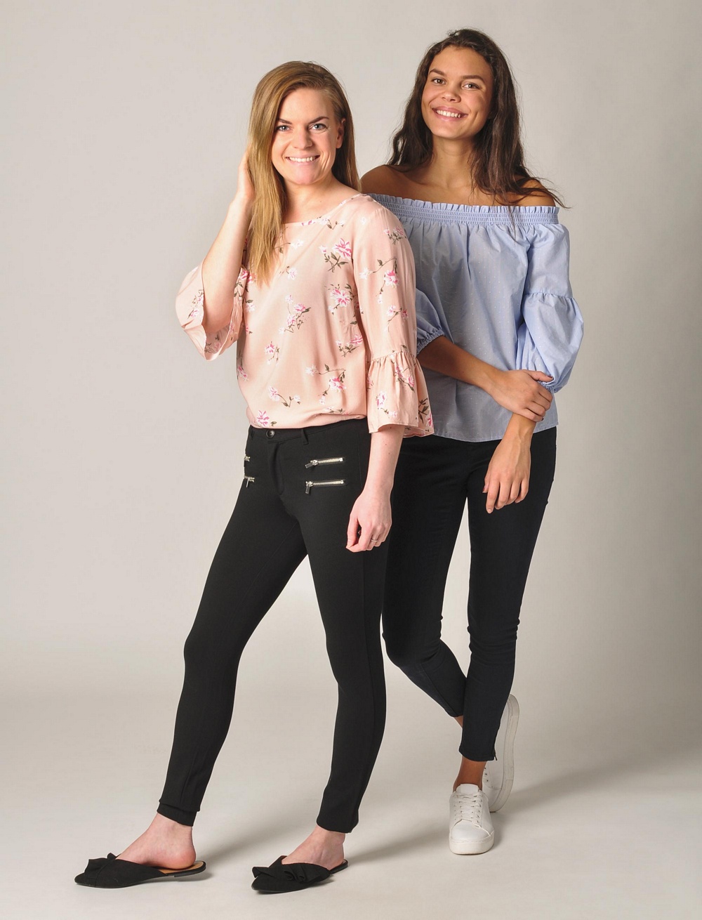 Amanda har på sig en offshoulder-topp i jättesöt modell. Den här blev vi alla riktigt sugna på! Så fin ihop med den nya färgen på byxan "Onlserena"! Dessa har vi verkligen sålt såå mycket av så här får ni vara snabba! Vi får dem i mörkblått och även påfyllning på de rosa.