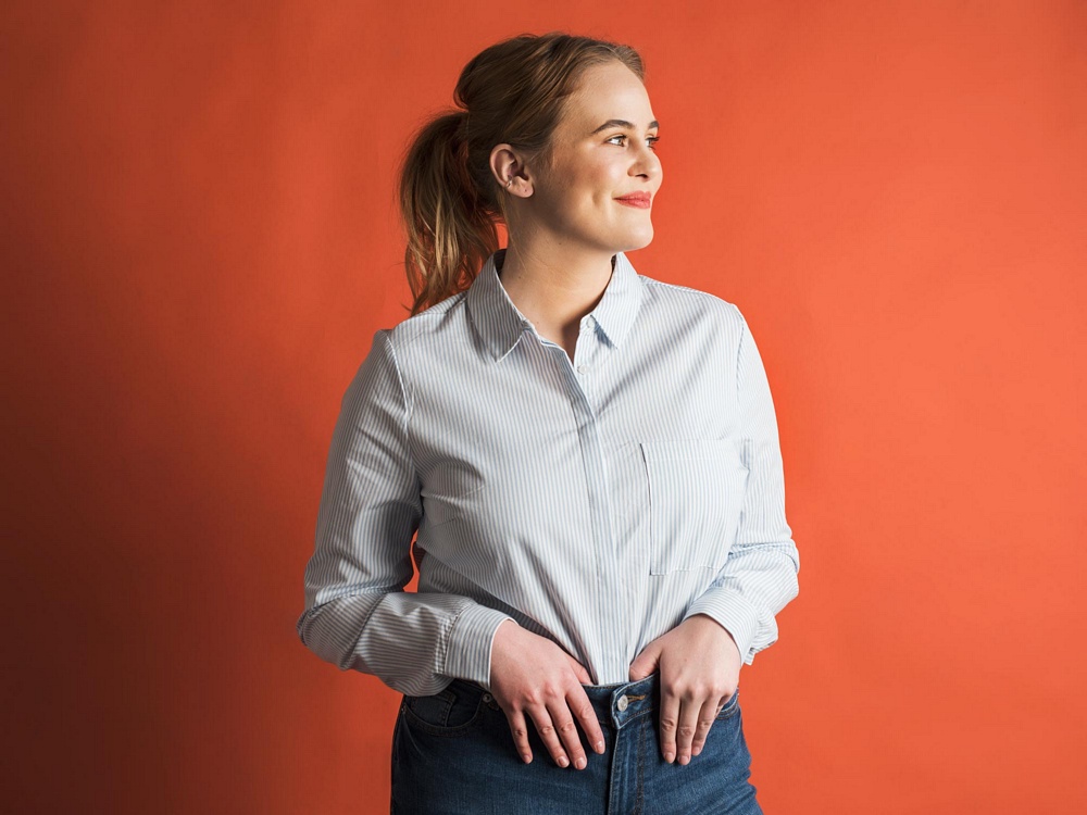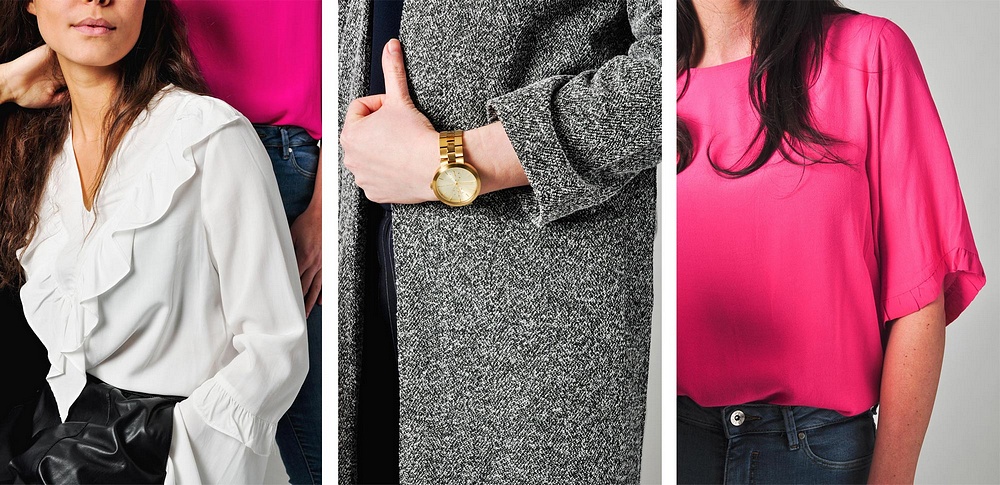Lina har på sig en av de nya färgerna på Onlys blus från Lux-serien! Den kommer även i en härlig senapsgul färg. Jättefin ihop med ett par jeans.