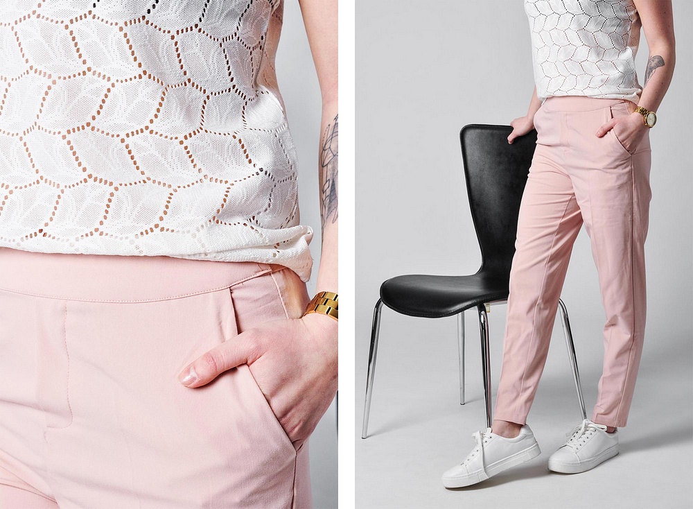 Den rosa byxan kommer från Pieces och sitter riktigt snyggt på! De är högre i midjan som gör att de blir riktigt fina ihop med en instoppad blus som Lina visa här. Den randiga toppen som vi matchar till byxan känns riktigt sommarfräsch i både färg och material!