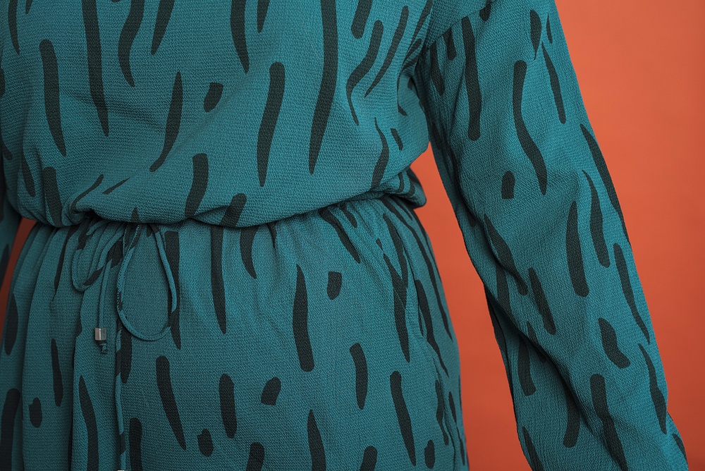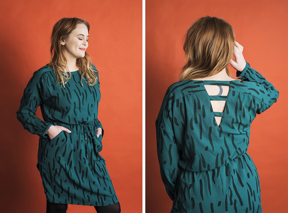 Här kommer en perfekt klänning att ha nu när det fortfarande är lite kallt ihop med ett par strumpbyxor! När värmen är hos oss är den riktigt läcker att ha barbent. Den gröna färgen blir riktigt snygg! Den mörkblå är också jättefin med det ljusa mönstret.