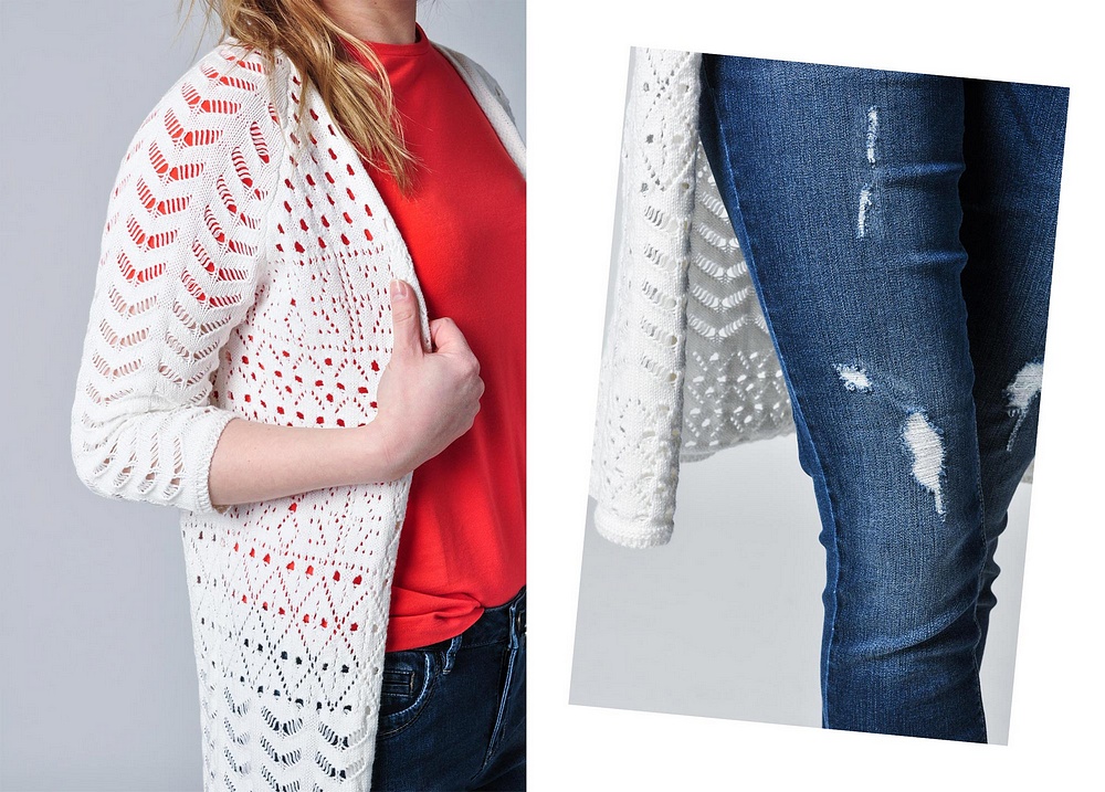 Den fina cardigan ni ser på Jessica i fint virkad kvalité kommer från Vila. Tänk er den till ett par ljusa jeans eller shorts till sommaren.. Behövs så lite som ett baslinne till för att den ska bli snygg!